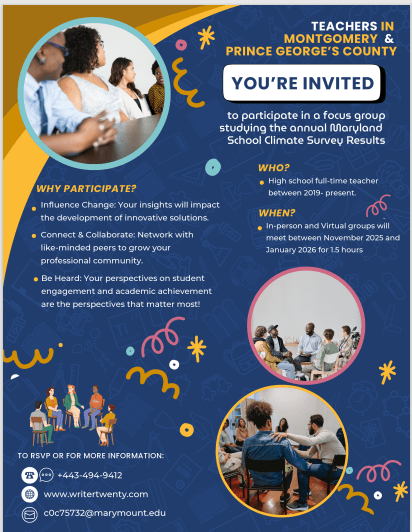 Contact: Chanelle Cohen, Lead Researcher & Peer Coach c0c75732@marymount.edu | 443.494.9412